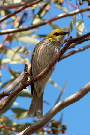 Honeyeaters abound with the musical calls of Yellow-plumed Honeyeaters giving away their presence in the mallee, and the delightful gurgling song of the Spiny-cheeked Honeyeater heard throughout much of Moorunde.